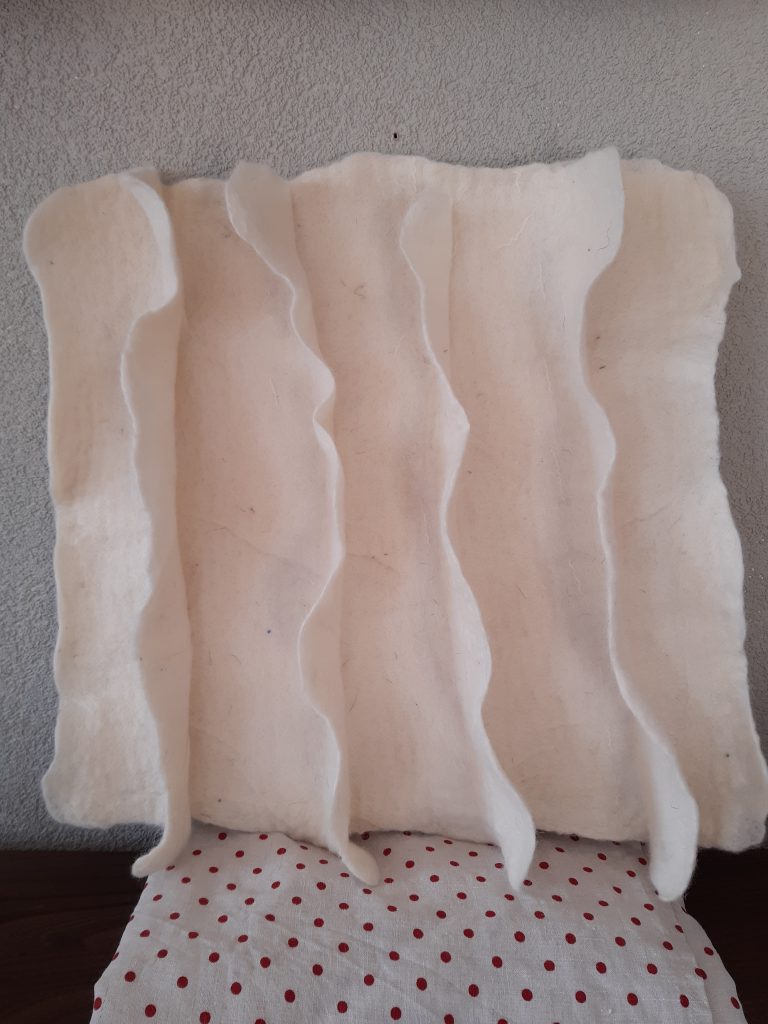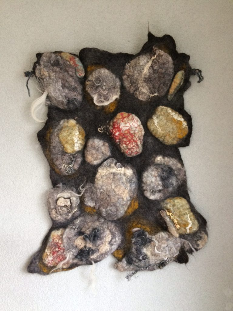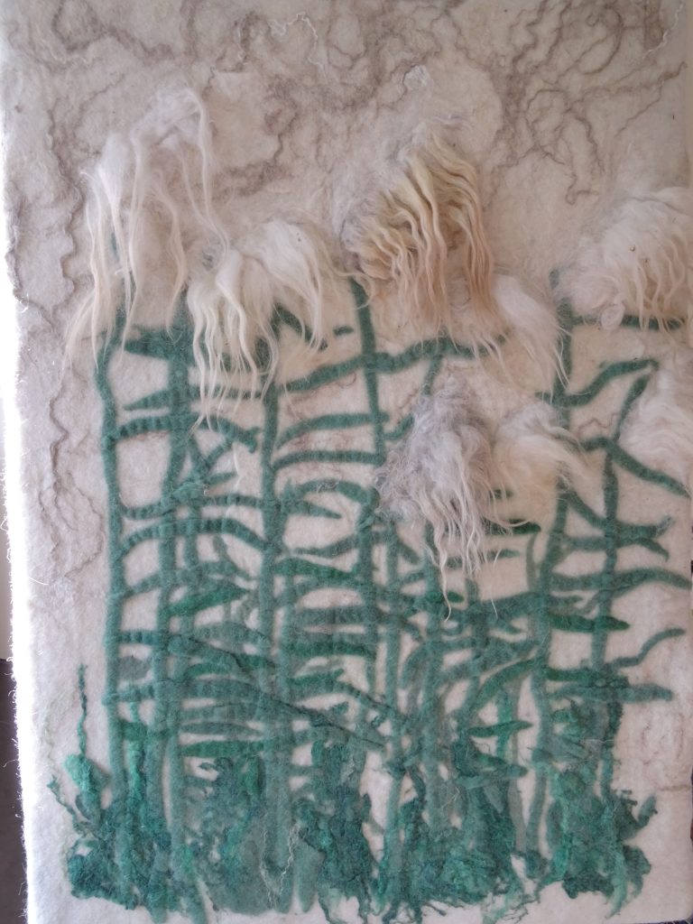 In mijn wolatelier geef ik drie verschillende workshops: Vachtvilten, Wandkleed vilten of een Lamellen wandkleed vilten.