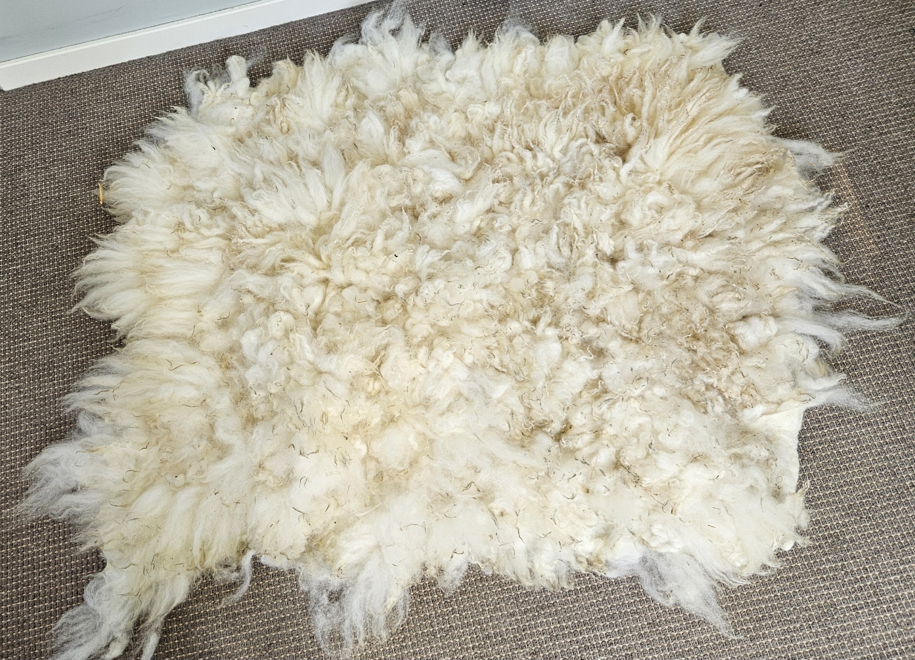 De vachtwol is van een jonge Texelaar schaap die op de zeedijk loopt bij Stavoren.
